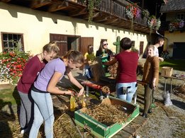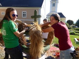 Der Körper braucht`s, der Bauer hat´s Unter diesem Motto stand am Wochenende der Katholischen Landjugend Wenigzell vom 24.09. - 25.09.2016 im Rahmen des Erntedankfestes der Pfarre Wenigzell nichts mehr im Wege. Bereits am Samstagmorgen wurde mit dem Stecken und Schmücken unserer Erntekrone begonnen. Wie immer bestens organisiert von unseren katholischen Vertretern des Vorstandes, Stefan Maierhofer und Maria Zisser. Nach einigen Stunden mit Fleiß, Kreativität und geschickter Handfertigkeit, erstrahlte die Wenigzeller Erntekrone am Nachmittag bereits in voller Pracht. Am Sonntag versammelten wir uns zum großen Erntedankfest. Mit der Erntekrone sowie Brot und Wein, unseren Sinnbildern einer guten Ernte, zogen wir in Richtung Dorfplatz zur Segnung und anschließend zur Erntedankfeier in die Pfarrkirche Wenigzell. Mit einem Denkanstoß welchen wir im Rahmen eines Projekts der Landjugend Steiermark "Der Körper braucht´s, der Bauer hat´s" verlautbarten und anschließend Stoffsackerl austeilten, durften wir uns auch neben der Erntekrone an der Erntedankfeier beteiligen. Eine Agape mit Brot, Wein, herrlichem Wetter und Klängen des MV Wenigzell, war ein feierlicher Abschluss der Erntedankfeier.